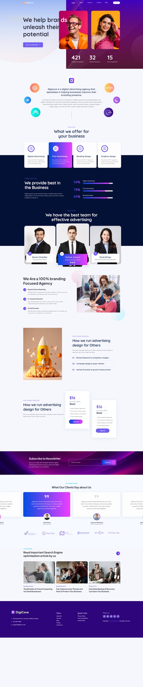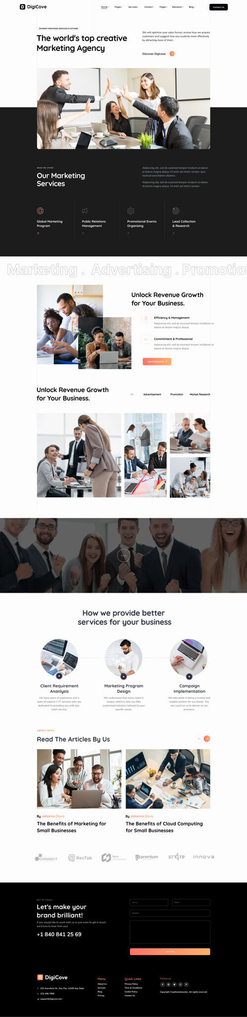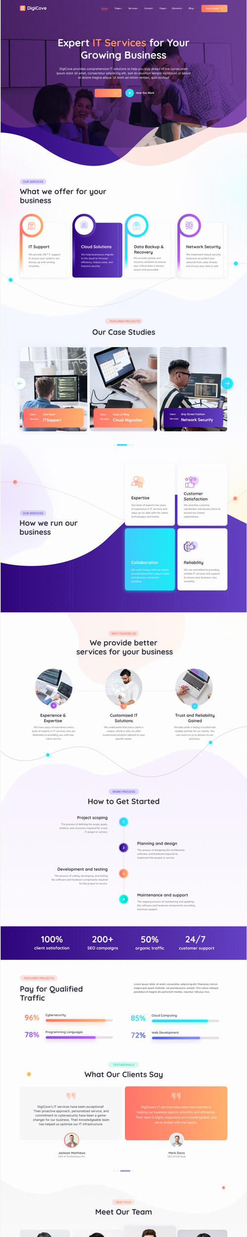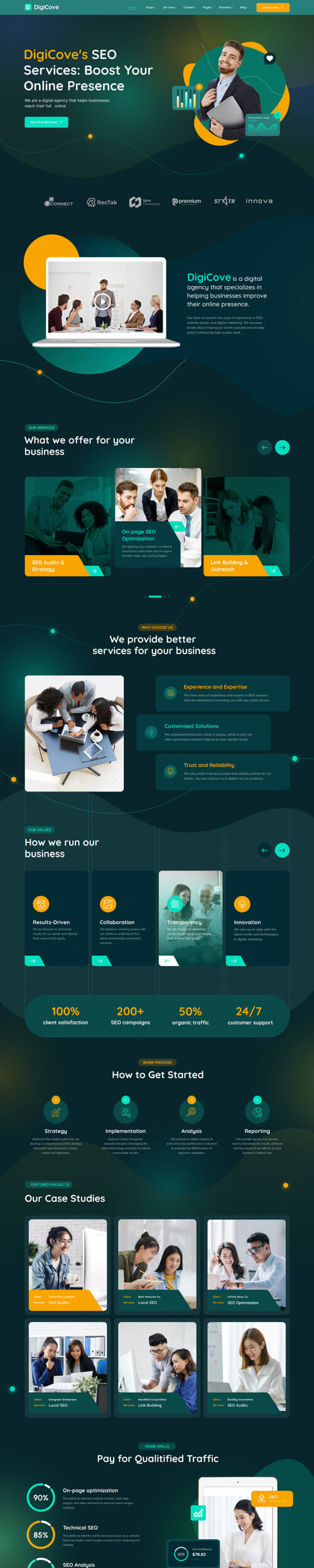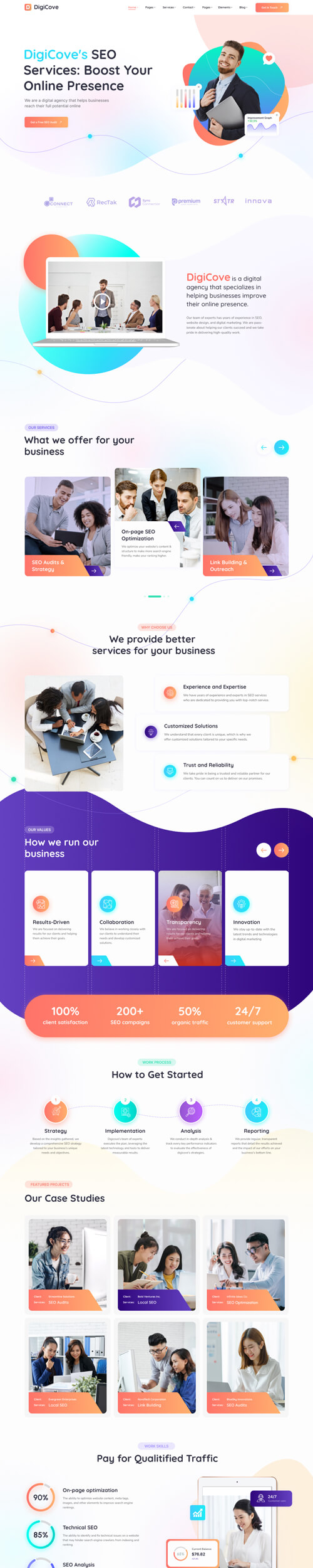 With the Digicove, you can easily create your own complete website. The inner pages have been optimally designed and arranged so that you can quickly and easily adjust your website to your needs.